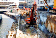 Worked for the main contractor for the $1.5 billion Gravity Base Structure (GBS) for the Hibernia Oilfield. This iceberg resistant structure is 106m diameter and 111m high. It was the first large GBS to be built in North America. The base raft was constructed in a dry dock and then towed to a deep water site where the walls were slipformed. The structure was built of high strength concrete and was very heavily reinforced and prestressed. It was a design/build mega project which was also technically complex and built to high quality standards. Time Magazine named it one of the seven wonders of the modern world. |